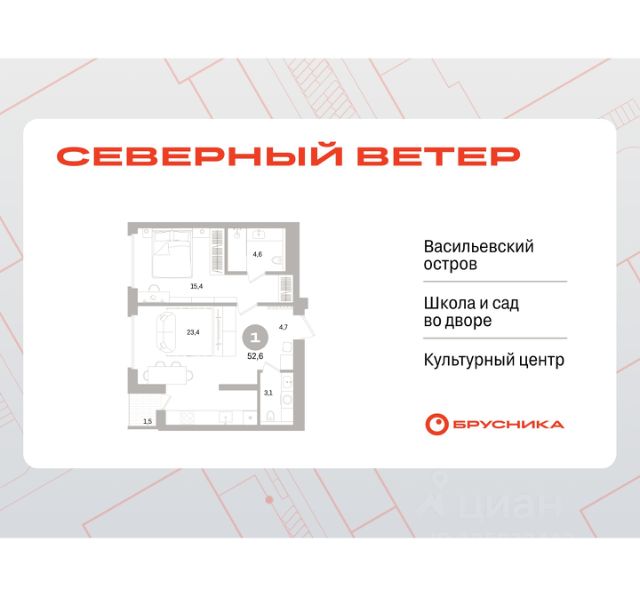 Просторная 1-комн. квартира с предчистовой отделкой в ЖК "Северный ветер" на 2 этаже. Общая площадь: 45.77 кв.м., жилая: 15.7 кв.м., площадь просторной кухни-столовой: 17.3 кв.м. Все окна выходят на одну сторону. В квартире один балкон, один совмещенный санузел. Высота потолков 3.1 м. Дом монолитный, многоподъездный, переменной этажности, от 3 до 16 этажей. Квартира находится в 7-й секции высотой 7 этажей в корпусе 3-1. На этаже 7 квартир. В подъезде 1 грузовой лифт. Окончание строительства - 2 квартал 2028 года. Оформление сделки по договору долевого участия. В основу концепции проекта "Северный ветер" легла идея деления квартала на шесть кластеров — активный городской, тихий природный, спортивный, семейный, культурный и рекреационный. Внутри каждого кластера будут организованы разные по характеру площади со своим назначением. Все их свяжет кольцевой бульвар, соединенный с большим парком и сопровождаемый водными аллеями по периметру всего квартала. Внешний облик "Северного ветра" вдохновлен скандинавским функционализмом и финским модернизмом, которым присущи лаконичные формы, динамичные разноуровневые объёмы, ритм окон, балконов и террас, сочетание натуральных текстур, а также единство экстерьера и интерьера. Дворы мы организовали на стилобатах домов. За счёт этого они приподнялись над улицей, стали еще более приватными и безопасными. Для тех, кому двор на стилобате кажется слишком приземленным, мы создали особенные зеленые террасы с великолепным видом на залив. Они появятся на крыше дома, в котором расположен дом культуры. Мы разделили лобби на два типа — большие (одно на каждый дом) и компактные (на каждую секцию). Для создания интерьеров лобби и холлов мы используем материалы природных оттенков, текстуры дерева и камня, матовые поверхности. В большие открытые пространства запускаем много естественного света, а витражное остекление органично связывает помещения с ландшафтом. В квартале спроектировано более 65 типов планировочных решений. Это значит, что любой жизненный сценарий может быть здесь реализован. #2mZ9oA Продается 1-комнатная квартира с отделкой в районе Василеостровский в Санкт-Петербурге.