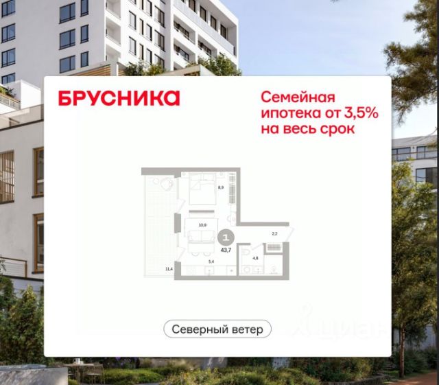 2-Евро квартира 41,13 с просторной кухней-гостиной в квартале бизнес-класса ЖК "Северный ветер". Квартиры с уникальным входом и палисадником. В этом корпусе застройщик уже не продает квартиры. Квартира расположена в идеальном корпусе.