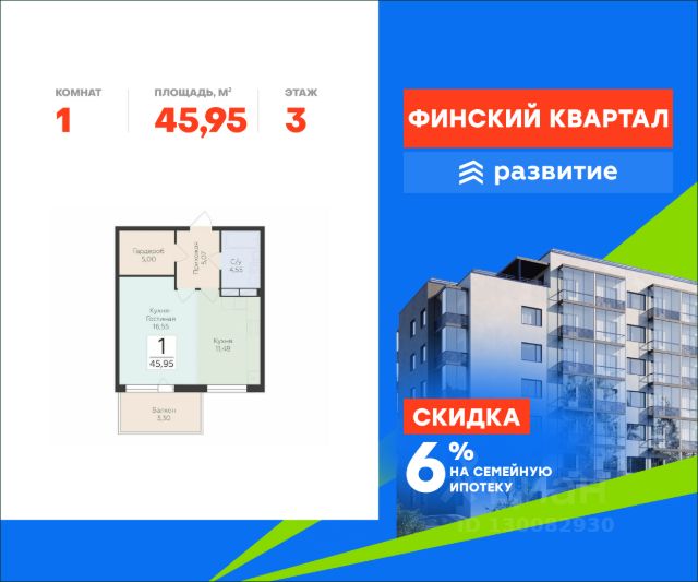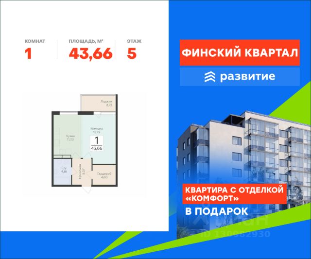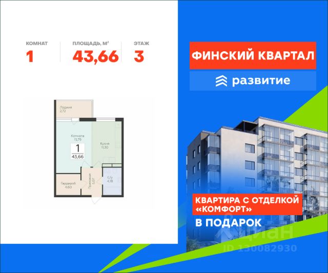 Продается квартира площадью 43.66 кв. м без отделки. Квартира расположена на 3 этаже 8 этажного дома, в жилом комплексе комфорт-класса "Финский Квартал". - без отделки - все ипотечные программы: стандартная, семейная, IT, военная - аккредитация в 15+ банках - первоначальный взнос от 20% (по условиям банка) - акция не суммируется с другими спецпредложениями "Финский квартал" - это уникальный проект комфорт-класса для тех, кто хотел бы жить на природе, но при этом находиться вблизи Северной столицы. Расположенный в окружении одного из самых крупных парков Ленобласти - Лахтинского, проект предлагает своим жителям доступную инфраструктуру, комплексное благоустройство территории, 6 секций переменной этажности с современной архитектурой, которая гармонично дополнит район и будет радовать проживающих еще много лет. Найдите свою идеальную квартиру в ЖК "Финский Квартал"! Расположение Пешком: - 5 мин. до детского сада и супермаркета; - 8 мин. до остановки "Зеленая улица"; - 10 мин. до лесопарковой зоны. На автомобиле: - 3 мин. до Приозерского шоссе; - 10 мин. до Выборгского шоссе; - 12 мин. до КАД; - 30 мин. до ст. метро "Проспект Просвещения". Благоустройство - большой яркий двор с ландшафтным дизайном; - живая изгородь, кустарники и хвойники; - умное зонирование тихих и активных площадок; - сквер для прогулок и отдыха; - изумрудные лужайки для пикников; - дорожки для пешеходов и велосипедистов; - большие игровые площадки; - мягкое покрытие для безопасности детей; - тренажеры, турники и веревочные комплексы; - пространство только для пешеходов - без машин; - наземная парковка за пределами двора; - специальные площадки для выгула питомцев; - светлые дизайнерские холлы; - светопрозрачное остекление и большие окна; - декоративная подсветка парадных; - колясочные помещения для комфорта родителей; - места для хранения велосипедов и самокатов. Окружение - свежий воздух: парк усадьбы "Осиновая Роща", Лахтинский парк, лесопарк "Курортный", Левашовский заказник, Ново-Кавголовский лесопарк; - водные объекты: Сестрорецкий Разлив, пляжи у Тохколодского и Большого озер, залив Сярюнлахти; - инфраструктура: 2 детских сада, школа, кафе, продуктовый супермаркет, больница; - для крупных покупок: ТРЦ "Китай-Город", "Мега-Парнас"", "Гранд Каньон"; - активный отдых: горнолыжные комплексы "Охта-Парк" и "Токсово", конный клуб "Осиновая Роща", ФОК "Норус". Продается 1-комнатная квартира первичка в сельском поселении Юкковское Всеволожского района.