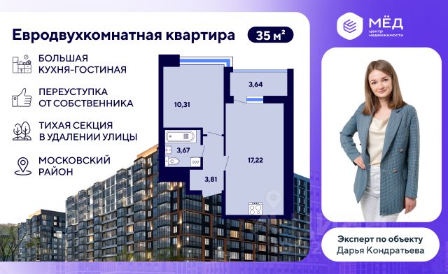 Продается просторная 1-комнатная квартира от застройщика в жилом комплексе "Титул в Московском" в престижном Московском районе. До метро можно добраться пешком всего за 25 минут. Удобная, классическая, функциональная европланировка, большая кухня-гостиная 15.49 м², просторная прихожая 5.55 м². Общая площадь квартиры - 36.04 м², жилая 10.14 м², высота потолка 2.77 м. Квартира продается с отделкой "Норд Лайн серый плюс". Что особенного в ЖК "Титул в Московском"? • Престижный Московский район • Авторская архитектурная концепция • 2 центральные входные группы с ресепшн и лаундж-зонами • Кленовая аллея с арт-стеллой, цветочная аллея и сад трав • Уютные дворы-патио, площадки SetlKids и SetlSport • Инновационный Лицей Setl с оригинальной архитектурной концепцией и уникальной образовательной средой Продается 1-комнатная квартира первичка на улице Кубинская в Санкт-Петербурге.