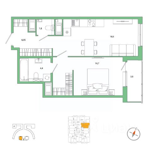 Арт. 118917012 Продается квартира формата 2-евро в ЖК "Бионика Заповедная" по переуступке, цена ниже застройщика на 1 млн ₽. О квартире: 32,5 м², кухня-гостиная 15,3, спальня 10, санузел 3,7, прихожая 3,5, этаж 3/12, потолки 2,77, окна С-В, отделка Nord Line (ламинат, плитка, обои под покраску, сантехника и электрика установлены). О доме: надежный застройщик Setl Group, сдача 3 кв. 2026. Фасады — навесные вентилируемые с архитектурным стеклом, материалы: керамогранит, фиброцемент, композит, декоративный металл. 2-камерные окна, система очистки воздуха в лифтах, доступ в паркинг со своего этажа, 4-ступенчатая очистка воды, pit-stop станция. Инфраструктура: школа 632, детсады 38 и 56, магазины, аптеки, спорткомплексы. В составе ЖК — школа и детсад с бассейнами. Для прогулок рядом Заповедный парк и Суздальское озеро. Транспорт: 10 мин до КАД, 15 до ЗСД, 1015 мин до метро "Озерки" и "Проспект Просвещения", автобусы 180, 267. Юридически: один взрослый собственник, сделка безопасна через застройщика с сопровождением юриста нашей компании. Запросите презентацию ЖК "Бионика Заповедная" — обязательно посмотрите её, чтобы самим понять уровень проекта. 1-комнатная квартира первичка на набережной Реки Каменки в Санкт-Петербурге.