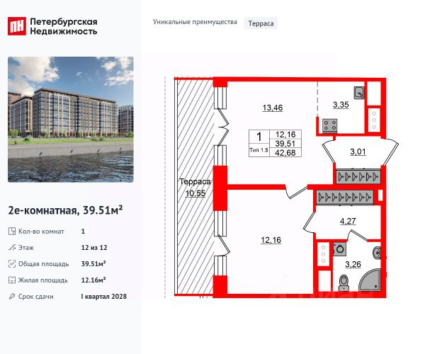 Продается просторная 1-комнатная квартира от застройщика в жилом комплексе "Setl Ривьера" в активно развивающимся Невском районе. До метро можно добраться на транспорте всего за 10 минут. Удобная, классическая, функциональная европланировка, вместительная прихожая 3.02 м². Общая площадь квартиры - 39.05 м², жилая 12.54 м², высота потолка 2.77 м. Квартира продается с отделкой "NORD LINE WHITE ВК NEW". Что особенного в ЖК "Setl Ривьера"? • Первая береговая линия Невы. 5 км до центра Петербурга • "Активити парк" - пространство для занятий спортом и отдыха. "Ривьера парк" с променадом и панорамной ротондой • Масштабные дворы 10 000 кв.м. с авторским ландшафтным дизайном • Двухуровневые единые входные группы • Видовые квартиры с террасами, каминами и саунами Продается 1-комнатная квартира первичка на набережной Октябрьская в Санкт-Петербурге.