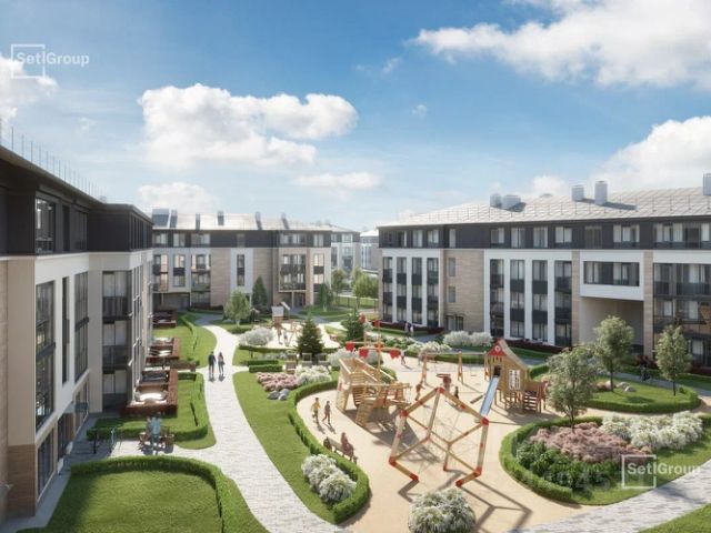 Жилой комплекс комфорт-класса находится на южном берегу Финского залива, рядом с дворцово-парковыми ансамблями Стрельны и Петергофа, в окружении дворцово-парковых ансамблей: Стрельна, Константиновский дворец, Петергоф, парк Новознаменка и Сосновая поляна, Шунгеровский лесопарк. Также в ЖК представлены два собственных парка: парадный верхний для спокойного отдыха, нижний для активных занятий. Малоэтажный жилой комплекс: всего 4 этажа, соответствующий стандартам экологичного строительства, энергоэффективности, экономии и комфорта. Более половины квартир с увеличенной высотой потолка: от 3 до 5,5 м. Также есть квартиры с саунами, возможностью установки камина и палисадника. Архитектура ЖК выполнена в единой концепции — имеет строгий вертикальный ритм со светлым невесомым низом и контрастным темным верхом. В фасадах ЖК строгость архитектурных форм сочетается с большим количеством остекления. Природная цветовая гамма в светлых оттенках с горизонтальным рустом. Применение современных трендовых материалов, таких как панели с диоксидом титана, улучшающие микроклимат жилого комплекса. Контрастные темные оттенки придают акцент последним этажам и входным группам коммерческих помещений. 50% квартир High Flat с увеличенными окнами, а значит, больше естественного солнечного света в квартирах и экономия на электроэнергии в светлое время суток. В ЖК используются стекло алюминиевые конструкции остекления лоджий. Темные оттенки оконного профиля, балконов и лоджий придают фасаду выразительность, а большое количество остекления делает квартиры не только светлее, но и визуально просторнее. Дворы в ЖК свободны от машин и огорожены по периметру: приватные уютные дворы-патио, палисадники, площадки для отдыха взрослых, площадка для йоги, детская площадка и спортивная площадка. Интерьеры холлов выполнены в единой стилистике с общим архитектурным решением жилого комплекса. Стены холлов повторяют светлую цветовую гамму фасадов, а детали интерьера и потолок — вторят темным акцентам на фасаде здания. В то же время в холлах больше стекла и металла. Вместе со встроенным освещением они придают интерьеру строгость и лаконичность. В холлах и местах общего пользования будут применяться датчики движения и фотореле, лифты будут оборудованы системой рекуперации энергии. Также в местах общего пользования будут установлены лампы с ультрафиолетовым обеззараживанием. Для детей в ЖК запланированы: школа на 700 мест с бассейном, детский сад на 280 мест с бассейном, детский сад на 75 мест, детские клубы. В цокольном этаже жилого комплекса запланированы кладовые помещения, а также подземный паркинг. Системой видеонаблюдения обеспечены: периметр здания, входы в подъезды, лифтовой холл 1-го этажа, лифтовые кабины, въезд и выезд автостоянки, детские площадки.