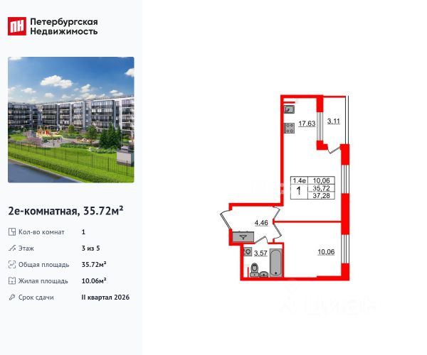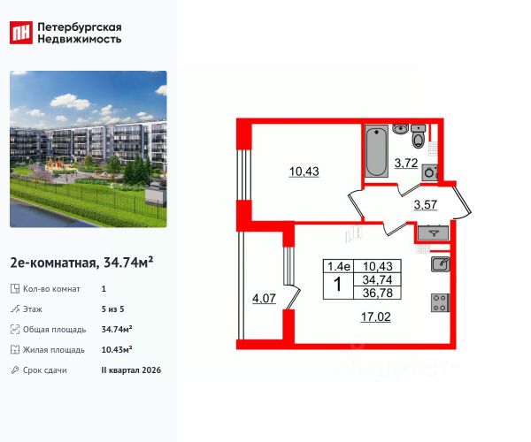 1-комн. квартира от застройщика с отделкой в ЖК "PLUS Пулковский" на 3 этаже. Общая площадь: 39.88 кв.м., жилая: 10.03 кв.м., площадь просторной кухни-столовой: 20.76 кв.м. Все окна выходят на одну сторону. В квартире один балкон, один совмещенный санузел. Высота потолков 2.75 м. Дом монолитный, многоподъездный, высотой 5 этажей. Квартира находится во 2-й секции в корпусе 2. На этаже 9 квартир. В подъезде 1 грузовой лифт. Начало строительства - 4 квартал 2023 года. В настоящее время строительство завершено, дом сдан в 4 квартале 2025 года. Оформление сделки по договору купли-продажи. Уютный пятиэтажный city квартал PLUS Пулковский расположен в престижном Московском районе на пересечении Пулковского и Волхонского шоссе в новом формирующемся микрорайоне. Рядом проходит одна из важнейших транспортных артерий города Пулковское шоссе, а в 10 минутах езды два въезда на КАД и въезд на ЗСД. Благодаря удобному и быстрому выезду на Пулковское шоссе, можно легко добраться до центра города за 35 мин. До станций метро "Московская" и "Купчино" - 15 мин. на машине, а до аэропорта Пулково - 17 мин. В составе квартала: 30 пятиэтажных домов, школа со спортивным стадионом, 2 детских сада с бассейнами, наземные и подземные паркинги, центральный зеленый бульвар с play hub и местами отдыха. Благоустройство квартала продумано до мельчайших деталей, в его основе - забота о качестве жизни каждого жителя. Дома возводятся по современной монолитной технологии строительства с вентилируемыми фасадами. Благодаря большим увеличенным окнам и отсутствию высокоэтажных домов, во всех квартирах максимальный объем естественного света. В составе квартала запланированы социально-значимые объекты: школа на 825 мест со спортивным стадионом и бассейнами, два детских сада с бассейнами на 220 мест каждый. Территория квартала зонирована таким образом, чтобы автомобильные и пешеходные потоки и не пересекались. Прогулочные и велосипедные дорожки отделены от автомобильных проездов зелеными насаждениями. Дворы закрыты для машин, что дает чувство дополнительной безопасности для жителей особенно, для самых маленьких. Вся территория квартала безбарьерная. Здесь нет пандусов, резких перепадов высот или неудобных ступеней. Вход в парадные с уровня земли. В каждом дворе есть своя оборудованная детская площадка. А в центре микрорайона расположится большая игровая площадка play hub с пространством для командных игр. PLUS Пулковский располагается в молодом микрорайоне, который сейчас находится в стадии активного развития. Он будет обладать собственной развитой инфраструктурой. В радиусе 15 минут езды на автомобиле располагаются многочисленные магазины, супермаркеты, спортивные, образовательные и медицинские учреждения, парки и достопримечательности. Для автомашин предусмотрены отдельно стоящий 5-ти этажный паркинг на 958 машино-мест, две подземные парковки на 367 машино-мест и наземные парковочные зоны по внешнему периметру микрорайона. #ZMev77