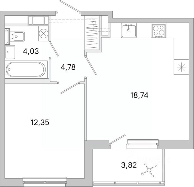 -у нас просторная и светлая комната с двумя окнами; имеется две небольшие кладовые и застекленный балкон;