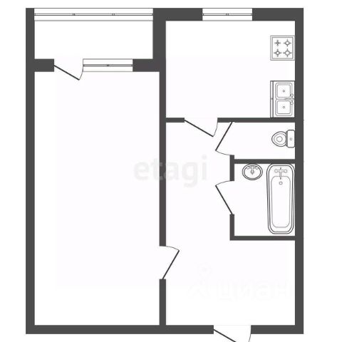 План квартиры общей приведенной площадью 44,60 кв.м. предполагает: