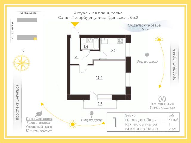 Объекты инфраструктуры Выборгского района обеспечивает комфорт и качество проживания. Расположенные в шаговой доступности объекты инфраструктуры МО Светлановское: объекты соц-культ-быта, памятники истории и архитектуры, территории отдыха, сады и парки, центры притяжения, включая все составляющие средового района особого внимания со стороны Газпром, обеспечивают собственнику, как комфортное проживание, так и операционную доходность - от 3-4 % (в случае долгосрочной) до 5-6 % (в случае среднесрочной и краткосрочной аренды).