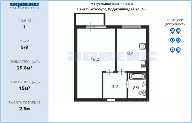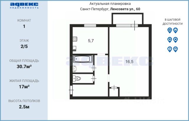 Развитая инфраструктура: магазины - ближайший в 100 метрах; в 5 минутах ходьбы торговые центры, аптеки, 2 фитнес-клуба с бассейном и т.д., во дворе школа и детский сад.
