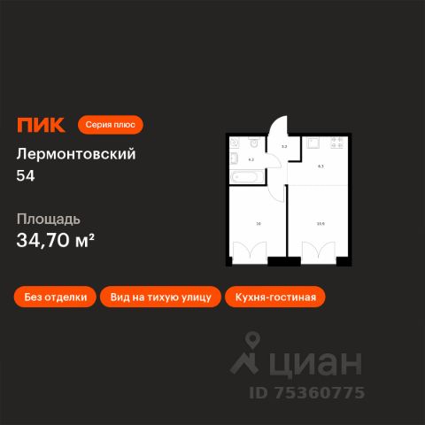 Продаётся 1-комн. квартира площадью 34,7 кв.м на 2 этаже 9 этажного дома (Корпус 2.1, Секция 2) проекта ПИК Лермонтовский 54. Светлый просторный подъезд на уровне земли, функциональная планировка, большие окна, без отделки. "Лермонтовский 54" находится в центре Санкт-Петербурга на набережной Обводного канала, в 5 минутах пешком от метро "Балтийская". Здесь будут квартиры с окнами в пол, высокими потолками и террасами. Жилой квартал находится в центре Санкт-Петербурга, в Адмиралтейском районе, на набережной Обводного канала. В 5 минутах пешком - станция метро "Балтийская". До Невского проспекта на автомобиле ехать 8 минут, до Московского проспекта - всего 2 минуты. Необычные фасады "Лермонтовского 54" напоминают о промышленной архитектуре, которая была популярна в Санкт-Петербурге в конце XIX и начале XX века. Материал отделки - прочный кирпич, который прослужит до 100 лет. А благодаря системе чиллер-фанкойл на фасадах не будет блоков кондиционеров - всё охлаждение происходит внутри здания. В "Лермонтовском" возводятся дома высотой от 7 до 9 этажей с небольшим количеством квартир: на этаже может быть всего две квартиры. Во дворах будут закрытые парки с детскими площадками и местами для отдыха, а на подземном этаже - паркинг с удобной навигацией. Между домами протянется пешеходный бульвар для прогулок и отдыха, для велосипедистов предусмотрены специальные дорожки и парковки. В 2024 году в "Лермонтовском 54" открылся лицей на 1000 мест. Он разместился в здании 1824 года - раньше здесь было Николаевское кавалерийское училище. Во всех квартирах будут трёхметровые потолки и окна в пол. На первых этажах откроются магазины, кафе и другие сервисы. Со стороны набережной в домах, которые признаны объектами культурного наследия, мы разместим общественные пространства. Недалеко от "Лермонтовского 54" находится Юсуповский дворец, парк Екатерингоф, на машине можно доехать до острова Новая Голландия и Мариинского театра. Рядом работают школы, детские сады, торговые центры и гипермаркеты. Артикул 921017 (Застройщик ООО "СПЕЦИАЛИЗИРОВАННЫЙ ЗАСТРОЙЩИК "АЛЬМАНДИН") [cn_sbp_1668579]