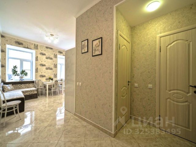 Общая площадь составляет 52 кв.м, из которых жилая часть — 18,9 кв.м, а просторная кухня — 24,5 кв.м. Высокие потолки 3 метра придают помещению дополнительный объем и свет.