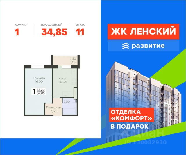 В продаже квартира площадью 35.05 кв. м без отделки на 2 этаже 16 этажного дома. Квартира находится в 4835 корпусе: Жилой комплекс "Ленский" - место, где встречаются природа и городская среда, а умиротворение загородной жизни сочетается с комфортом. Проект располагается на северо-востоке Санкт-Петербурга, в Южном микрорайоне Всеволожска, в 16 км от КАД, с удобным выездом на Колтужское шоссе и Дорогу Жизни. В его состав входят два 18-этажных корпуса с видами на Колтушские высоты, сервисы повседневной инфраструктуры, собственный приватный двор, просторный паркинг для жителей и гостей. Девелопер проекта - федеральный застройщик ГК "Развитие". Транспортная доступность На автомобиле: • 30 мин до станции метро "ул. Дыбенко" • 35 мин до центра Санкт-Петербурга Архитектура Архитектурный облик отличается современным дизайном. Панорамные окна с большой площадью остекления наполняют квартиры светом, актуальная финская технология Peikko защищает квартиры от промерзания даже в северном климате. Дома прочные, долговечные, их конструкция гарантирует тёплый микроклимат зимой, прохладу летом и отличную звукоизоляцию. Планировочные решения Функциональные планировки отличаются простотой и эргономичностью, пространство эффективно используется даже на небольшой площади. К кухне примыкает просторная лоджия с панорамным остеклением, во всех двух- и трехкомнатных квартирах - по два санузла. Все квартиры сдаются с отделкой white box, которая позволяет существенно сократить стоимость и сроки ремонта. По желанию доступны варианты чистовой отделки под ключ: "комфорт" и "бизнес" с использованием современных материалов. Благоустройство - приватный двор без машин; - всесезонное озеленение; - спортивный корт для футбола и баскетбола; - детские площадки с мягким покрытием; - площадка для настольного тенниса; - скамейки и беседки для отдыха по всему периметру; - прогулочные и велосипедные дорожки в тени деревьев; - сквозные парадные с большими окнами; - просторная входная группа на уровне земли; - колясочные помещения; - торговая галерея в шаговой доступности. Окружение - 5 парков: заповедник "Колтушские высоты", парк "Софиевка", "Румболовский", "Кенша", Державинский и Алексеевский парки. За 5-10 минут можно добраться транспортом до Песчанки и Петропавловского парка. Ковалевский лесопарк выделяется прекрасными экотропами, зонами для пикников и велодорожками, а Ждановские озера - благоустроенными пляжами; - рядом Колтушинский фреш-маркет с фермерскими продуктами и крупный ТЦ "Юбилейный", где работают более 70 магазинов, кинотеатр и фуд-корт; - 10 детских садов, начальная и средняя школы, центры дополнительного образования, творческие секции; - в ближайшей доступности фитнес-центры, бассейн, теннисный клуб и даже центр верховой езды; - культурные и знаковые места: Музей-усадьба "Приютино", музей "Дом Авиаторов", мемориальный комплекс "Дорога Жизни", многочисленные пешеходные маршруты. Продам 1-комнатную квартиру с балконом в Всеволожске.