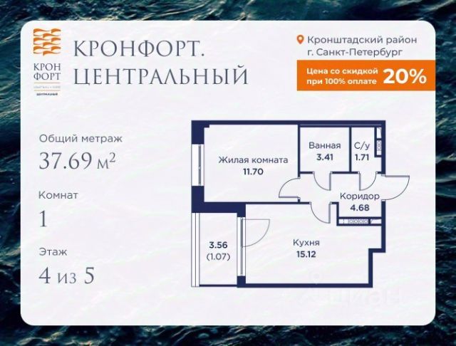 Стоимость квартиры указана со скидкой 20%. Скидка предоставляется при 100% оплате или несубсидированной ипотеке. Предлагается квартира площадью 40.69 кв.м в жилом комплексе "Кронфорт. Центральный" в Санкт-Петербурге (Кронштадт). Возможна покупка с использованием льготных и специальных ипотечных программ с государственной поддержкой. Высота потолков в квартирах — от 3 до 3,4 метров, окна увеличенного размера, есть варианты с эркерами, французскими балконами, лоджиями и террасами. Жилой квартал состоит из пяти четырехэтажных корпусов с закрытыми охраняемыми дворами, свободными от машин. Первые этажи формируют торговые променады в стиле пешеходных улиц исторической части Петербурга и Кронштадта. Внутренние пространства между корпусами — пешеходные зоны с уютными площадями. Архитектурный облик квартала разработан бюро "Проектная культура" и международной компанией Chapman Taylor. Инфраструктура комплекса включает: - Лицей с двумя бассейнами - Детский сад на 150 мест с бассейном и закрытой территорией - Веревочный парк - Игровые площадки для активного отдыха; - Кабинет врача общей практики. - Подземные паркинги с лифтами. - Мусоросборные камеры, индивидуальные кладовые. - Закрытые дворы с контролем доступа и видеонаблюдением. - Мультформатный стрит-ретейл с кафе и ресторанами. - Триатлон-центр и беговые/велодорожки. - Учебно-тренировочный комплекс для детей "Лагерь настоящих героев". Транспортная доступность обеспечивает удобный выезд на КАД (около 1-3 км), 2 минуты пешком до автобусной остановки "Лицей", 25 минут до Сестрорецка, 30 минут до "Лахта-центра", 50 минут до аэропорта "Пулково" и 60 минут до Московского вокзала. Для любителей моря доступен маршрут на "Метеоре" до центра Санкт-Петербурга. Отделка квартир предлагается как с готовой чистовой отделкой, так и со свободной планировкой без отделки для реализации индивидуальных дизайнерских решений. В третьем корпусе, продажи которого стартовали в марте 2025 года, доступны квартиры с просторными террасами, тремя балконами, кухнями-гостиными до 38 кв.м с окнами на две стороны, обеспечивающими панорамное освещение и виды. Если вам нужна помощь с оформлением ипотеки или дополнительная информация по комплексу и условиям покупки, обращайтесь в отдел продаж за консультацией. Продается 1-комнатная квартира с балконом в районе Кронштадтский в Санкт-Петербурге.