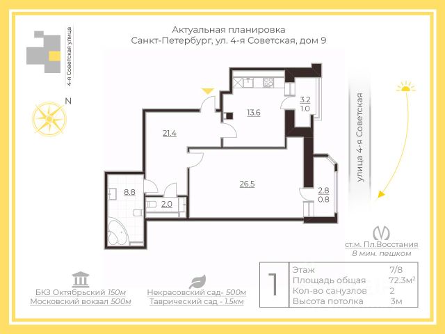 Продается однокомнатная квартира в ЖК "BAKUNINA 33" на 7 этаже. Квартира без отделки, после выдачи ключей можно делать ремонт. Общая площадь: 50 кв.м., жилая: 19.65 кв.м., площадь просторной кухни-столовой: 18.24 кв.м. Все окна выходят на одну сторону. В квартире один балкон, один совмещенный санузел. Высота потолков 3.0 м. Дом монолитный, трехподъездный, высотой 9 этажей. Квартира находится во 2-й секции в корпусе 1. На этаже 5 квартир. В подъезде 1 пассажирский и 1 грузовой лифт. Начало строительства - 2 квартал 2023 года. В настоящее время строительство завершено, дом сдан во 2 квартале 2025 года. Оформление сделки по договору купли-продажи. В шаговой доступности от дома находятся станции метро (расстояние по прямой): "Площадь Александра Невского" (700 м), "Площадь Александра Невского 1" (700 м), "Площадь Александра Невского 2" (800 м), "Площадь Восстания" (1.4 км), "Новочеркасская" (1.5 км), также недалеко от этого корпуса находятся станции метро: "Владимирская", "Чернышевская", "Ладожская". Клубный дом BAKUNINA 33 - новый стандарт престижной жизни в Центральном районе. В 10 минутах от Невского проспекта и в двух минутах от Синопской набережной и Невы, в благоустроенной и знакомой среде. Локация клубного дома Bakunina 33 - идеальное место для погружения в культурную и светскую жизнь Санкт-Петербурга. В 10-15 минутах на машине почти все знаковые достопримечательности города: Эрмитаж, Русский музей, Александринский и Мариинский театры, БДТ, Таврический парк Казанский собор, Спас на крови и другие величественные дворцы, соборы, музеи, ради которых в город ежегодно съезжаются тысячи гостей. Каждая линия и каждый элемент дизайна дома является частью целостной концепции. Облик здания гармоничный, классически сдержанный с выверенными пропорциями и элегантными формами. Цветовые и архитектурные решения и эркеры придают облику дома легкость, доступную лишь респектабельной классике. Фасады привлекают внимание плавными ритмичными переходами. Вертикальная разбивка колоннами визуально устремляет здание ввысь. Плоскость фасадов декорирована разными элементами из гранита. Ограждение балконов, эркеры и колонны дополнены лаконичным геометрическим орнаментом в акцентном теплом сером цвете. Первые два этажа дома облицованы натуральным гранитом тёмного оттенка. Основной объём здания - выполнен штукатурным фасадом с окраской светлыми тонами из цветовой палитры " Традиционные цвета Санкт-Петербурга". Верхний этаж выполнен в стиле мансарды с высотой потолков в квартирах 3,5 метра. Этим достигается цель гармоничного и сомасштабного существования в одном фронте с существующими зданиями. За венчающим карнизом располагаются балконы девятого этажа. Ограждения балконов дополнены геометрическими узорами. Закрытый внутренний двор со сквером и детской площадкой. Острова зелени с водной чашей в центре создают ощущение гармонии и умиротворения. Современная уличная мебель и освещение формируют домашнюю атмосферу уюта и представляют двор как дополнительно 1-комнатная квартира с балконом рядом с метро Маяковская.
