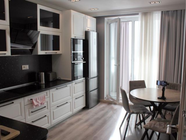 В двухстороннем АПАРТАМЕНТЕ площадью 49 кв.м выполнен новый, стильный дизайнерский ремонт. Многоуровневая система освещения, корпусная и мягкая мебель изготовлены на заказ, теплый водный пол и напольные радиаторы, качественная техника, во всем апартаменте панорамное остекление - окна в пол! Просторная кухня-гостиная (26 кв.м) с обеденной зоной-островом оснащена современной техникой, стильной мебелью, выполненной на заказ, уютными диванами и имеет выход на просторный балкон площадью 10 кв.м. Используемые в интерьере элементы декора являются одними из самых востребованных в этом году!