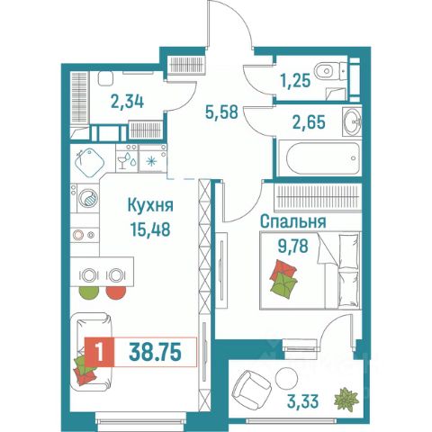 Купить 1-комнатную квартиру с дизайнерским ремонтом на аллее Ньютона в поселке Бугры (от 9,2 млн руб.)
