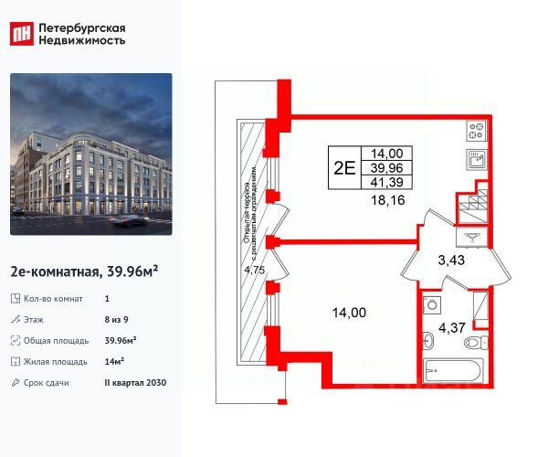 Продается просторная 1-комнатная квартира от застройщика в жилом комплексе "Кристалл Холл" в Адмиралтейском районе. До метро можно добраться Тип 1 всего за 15 минут. Удобная, классическая, функциональная европланировка, большая кухня-гостиная 18.16 м², вместительная прихожая 3.43 м². Общая площадь квартиры - 39.96 м², жилая 14 м², высота потолка 3 м. Квартира продается с отделкой "NORD LINE BUSINESS".