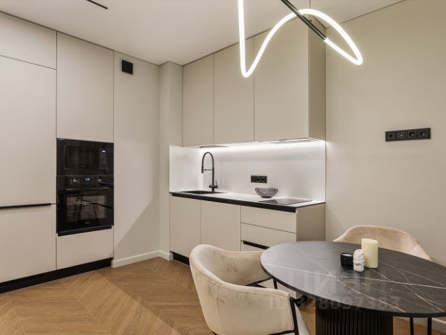 В квартире есть вся необходимая техника , посудомоечная машина , большой холодильник , стиральная машина , большой шкаф-гардероб , тёплый пол, большой тропический душ, кондиционер , телевизор с функцией SmartTV .