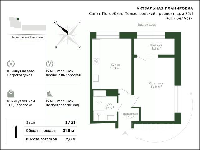 Просторная однокомнатная квартира с предчистовой отделкой в ЖК "RESPECT" на 3 этаже. Общая площадь: 36.39 кв.м., жилая: 13.38 кв.м., площадь просторной кухни-столовой: 11.8 кв.м. Все окна выходят на одну сторону. В квартире один балкон и одна лоджия, один совмещенный санузел. Высота потолков 2.7 м. Квартира будет сдана с отделкой WHITE BOX, в которую включены следующие виды работ: - заливка стяжки; - установлена система отопления квартиры; - подготовлены потолки; - все стены выровнены, загрунтованы и отштукатурены; - электрическая проводка разведена по комнатам. Квартира будет готова к чистовой отделке. Квартира находится в корпусе 6. Дом монолитный, одноподъездный, высотой 13 этажей. На этаже 8 квартир. В подъезде 1 пассажирский и 1 грузовой лифт. Окончание строительства - 4 квартал 2026 года. Оформление сделки по договору долевого участия. В шаговой доступности от жилого комплекса имеются станции метро (расстояние по прямой): "Лесная" (800 м), "Площадь Мужества" (1.4 км), "Выборгская" (1.9 км), также недалеко от этого корпуса расположены станции метро: "Академическая", "Политехническая". Жилой квартал "RESPECT" строится на Полюстровском пр, 87, в одной из самых востребованных локаций Петербурга. В 10 минутах пешком - метро "Лесная" и в 10 минутах на транспорте - Петроградская сторона. Высота домов от 7 до 13 этажей. Квартиры сдаются с отделкой white box и с чистовой отделкой. На территории Respect строится школа на 1125 учащихся и детский сад на 240 мест. Запроектированы собственная газовая котельная, закрытая территория, дворы без машин и подземные паркинги с лифтами. В проекте предусмотрены трапециевидные балконы или остекленные лоджии, которые, с одной стороны, исключают монотонность фасада, являясь декоративными элементами, с другой дополнительным функциональным пространством в квартирах. Цветовая гармония фасадов каждого дома раскрывает характер квартала. Коричневый цвет клинкерного кирпича со структурой водяных штрихов — цвет уюта и безопасности, сдержанности и надёжности. Вентилируемые фасады облицованы клинкерным кирпичом. Его высокая прочность позволяет давать 100 лет гарантии на этот материал. Водопоглощение клинкерного кирпича составляет менее 5%, за счет чего у него высокая теплопроводность и прочность. В квартале запроектированы внутренние закрытые территории дворов домов без доступа автомобилей и безбарьерная среда для велосипедистов и колясок. Предусмотрены IP-домофония с функцией дистанционного открывания калиток и парадных, а также дистанционный сбор показаний счетчиков и мобильное приложение для жителей. Для безопасности жителей квартала - круглосуточное видеонаблюдение и служба охраны. В каждой квартире предусмотрены внешние корзины для кондиционеров. Вся территория квартала будет связана единой концепцией благоустройства, разработанной ландшафтным бюро L.BURO. На эксплуатируемой кровле на уровне первого этажа в домах 1 и 4 будут обустроены общественные видовые террасы. Это станет не только привлекатель