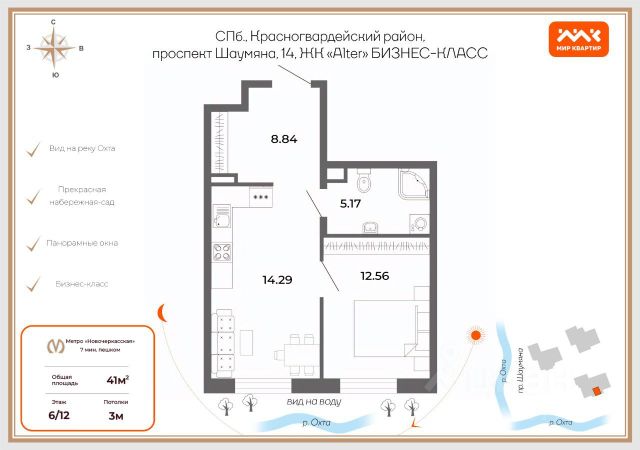 Цена действует при 100% оплате и на определенные ипотечные программы. Подробности — в отделе продаж по телефону. Продаётся 1-комнатная квартира в ЖК "Большая Охта" на 3 этаже. Общая площадь составляет 36.80 кв. м. Квартира с white box отделкой. Жилой комплекс "Большая Охта" располагается по адресу Санкт-Петербург, Красногвардейский. "ЛСР. Большая Охта" - проект бизнес-класса, в Красногвардейском районе между Якорной и Партизанской улицами, рядом с центром Петербурга. Престижный комплекс с удобной пешеходной и транспортной доступностью. Особенности квартиры высокие потолки и увеличенные окна. Горизонтальная разводка труб водоснабжения и отопления и вынесенные в холлы счетчики сохранят эстетичный дизайн комнат. Встроенные клапаны инфильтрации воздуха будут поддерживать чистоту и свежесть воздуха. Расположение: • 8 мин на авто до станции метро "Новочеркасская"; • 10 мин на авто до станции метро "Ладожская"; • 10 мин на авто до Таврического сада и исторического центра города; • 13 мин на авто до станции метро "Чернышевская"; • 25 мин на авто до КАД. Пространство внутри комплекса разделено на функциональные зоны: тематические, спортивные, уединенные. Все площадки окружают взрослые хвойные и лиственные деревья, подобранные с учетом роста, эстетики и сезонного цветения. Расширенная инфраструктура комплекса продумана до мелочей. Внутри квартала есть все необходимое для жизни с комфортом и удовольствием - детские сады и школы, магазины, площадки для спорта и отдыха, фитнес-залы, модные кофейни и общественные летние веранды. Преимущества: • Подземный паркинг и кладовые помещения; • Двор без машин; • Система "Умный дом" (в т.ч. управление домофоном со смартфона); • Пост охраны и консьерж; • Индивидуальный тепловой пункт; • Колясочные в каждой парадной; • Зарядка для электромобилей. Успейте приобрести квартиру на выгодных условиях! Чтобы узнать подробности, обращайтесь за консультацией по телефону.