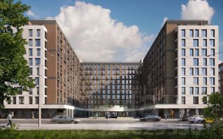 Расположена в зеленой зоне, в парке "Серебряный пруд".
