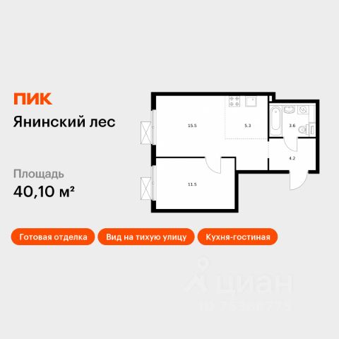 Продаётся 1-комн. квартира площадью 40,1 кв.м на 3 этаже 15 этажного дома (Корпус 7, Секция 1) проекта ПИК Янинский лес. Светлый просторный подъезд на уровне земли, функциональная планировка, большие окна, c отделкой. Жилой квартал "Янинский лес" возводится в районе Янино-1 Ленинградской области. Автобусная остановка находится в 3 минутах пешком. Проект расположен вплотную к восточной границе Санкт-Петербурга - в 4 минутах от КАД. До метро "Ладожская" - 23 минуты на общественном транспорте. До исторического центра города можно доехать за 25 минут на автомобиле. "Янинский лес" - масштабный проект из 32 жилых корпусов, где будет всё для комфортной жизни. Здесь предусмотрены надземные паркинги, откроются детские сады, школа и поликлиника. Кроме этого, появятся места, в которых можно проводить свободное время: ледовая арена и торговый центр площадью больше 3000 м². Жилой район строится по всем правилам ПИК-Стандарта: в зелёных дворах-парках появятся современные детские и спортивные площадки, пешеходный бульвар и другие места для отдыха. На первых этажах разместятся магазины, кафе и другие сервисы. Во дворах не будет автомобилей, а для гостей предусмотрены парковочные места. Проект окружают лесные массивы. В пешей доступности находится Ржевский лесопарк: летом там можно гулять и собирать грибы, а зимой кататься на лыжах. Также рядом расположен памятник природы Колтушские высоты - парк с обустроенными экотропами и веломаршрутом. А главное место притяжения местных жителей - озеро с обустроенным местом для пикников. Артикул 914959 (Застройщик ООО "СПЕЦИАЛИЗИРОВАННЫЙ ЗАСТРОЙЩИК"ЭКСТРАГРАД") [cn_sbp_1776469]