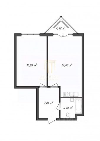 Кухня-гостиная 17,5 м² • Спальня 16,5 м² • Лоджия 5 м² • Дом 2019 года • Кирпично-монолит