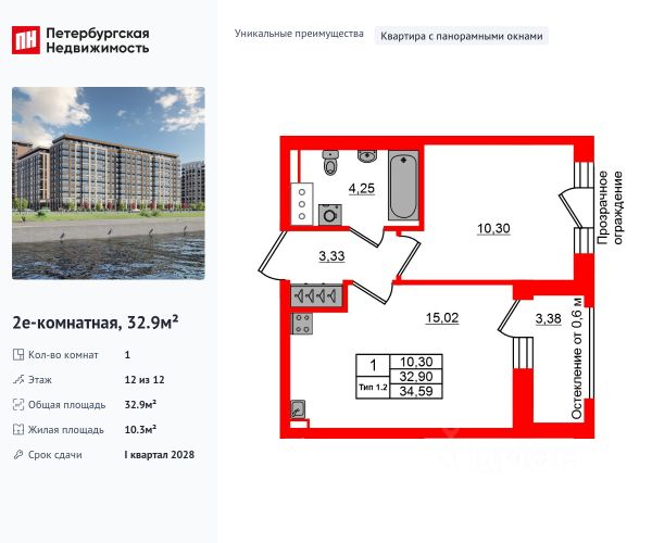 Цена со скидкой до 30% в прямой продаже от застройщика — только в этом месяце. На апартаменты действует беспроцентная рассрочка. Роскошные виды на Неву. 1-к апартамент в комплексе класса бизнес-лайт Зум на Неве на 4-м этаже. Общая площадь 35,7. Предчистовая отделка. Зум на Неве расположен в новом месте силы рядом с центром города на первой линии Октябрьской набережной в Невском районе, всего в 7 км от исторической части Санкт-Петербурга. Большой выбор эргономичных и максимально продуманных планировок позволит каждому найти вариант по душе. Панорамные виды на Неву, благоустроенные дворы, детская игровая комната, подземный паркинг, коммерческие зоны на первом этаже, это и многое другое делает Зум на Неве идеальным местом для жизни. Особенности: - Панорамные виды на Неву и город; - 10 мин. до Парка Строителей, 15 мин. до Лондон-молла, Ленты, Максидома, 15 мин. до метро "ул. Дыбенко", 12 мин. до КАД, 10 мин. до центра; - Единая архитектурная концепция. Сдержанные и монументальные фасады в неоклассическом стиле; - Парадный лобби для жильцов. Единый вход в комплекс с администратором, зоной ресепшн и охраной, зоной для бесконтактной доставки посылок и еды; - Подземный отапливаемый паркинг с доступом из парадной; - Доступно 3 варианта отделки на выбор: черновая, предчистовая (White Box) и чистовая; - Зоны отдыха для взрослых и детей, Wi-Fi-покрытие во дворе и в паркинге, зоны для питомцев, арт-объекты и много другое. В шаговой доступности вся необходимая инфраструктура от детских садов и школ до супермаркетов и салонов красоты; - Все происходящее контролируется видеокамерами, а покой внутренней территории и безопасность ваших детей гарантируется полным отсутствием транспорта во дворах в концепции "без машин".