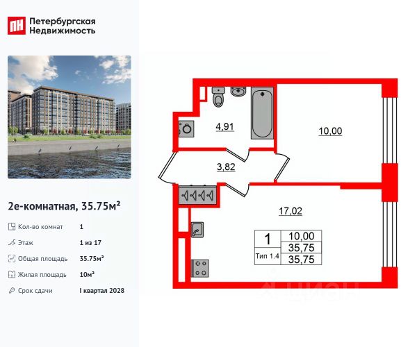 Цена со скидкой до 30% в прямой продаже от застройщика — только в этом месяце. На апартаменты действует беспроцентная рассрочка. Роскошные виды на Неву. 1-к апартамент в комплексе класса бизнес-лайт Зум на Неве на 4-м этаже. Общая площадь 35,7. Предчистовая отделка. Зум на Неве расположен в новом месте силы рядом с центром города на первой линии Октябрьской набережной в Невском районе, всего в 7 км от исторической части Санкт-Петербурга. Большой выбор эргономичных и максимально продуманных планировок позволит каждому найти вариант по душе. Панорамные виды на Неву, благоустроенные дворы, детская игровая комната, подземный паркинг, коммерческие зоны на первом этаже, это и многое другое делает Зум на Неве идеальным местом для жизни. Особенности: - Панорамные виды на Неву и город; - 10 мин. до Парка Строителей, 15 мин. до Лондон-молла, Ленты, Максидома, 15 мин. до метро "ул. Дыбенко", 12 мин. до КАД, 10 мин. до центра; - Единая архитектурная концепция. Сдержанные и монументальные фасады в неоклассическом стиле; - Парадный лобби для жильцов. Единый вход в комплекс с администратором, зоной ресепшн и охраной, зоной для бесконтактной доставки посылок и еды; - Подземный отапливаемый паркинг с доступом из парадной; - Доступно 3 варианта отделки на выбор: черновая, предчистовая (White Box) и чистовая; - Зоны отдыха для взрослых и детей, Wi-Fi-покрытие во дворе и в паркинге, зоны для питомцев, арт-объекты и много другое. В шаговой доступности вся необходимая инфраструктура от детских садов и школ до супермаркетов и салонов красоты; - Все происходящее контролируется видеокамерами, а покой внутренней территории и безопасность ваших детей гарантируется полным отсутствием транспорта во дворах в концепции "без машин".