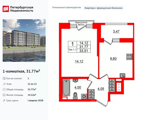 Цена со скидкой до 30% в прямой продаже от застройщика — только в этом месяце. На апартаменты действует беспроцентная рассрочка. Роскошные виды на Неву. 1-к апартамент в комплексе класса бизнес-лайт Зум на Неве на 9-м этаже. Общая площадь 40,5. Чистовая отделка. Зум на Неве расположен в новом месте силы рядом с центром города на первой линии Октябрьской набережной в Невском районе, всего в 7 км от исторической части Санкт-Петербурга. Большой выбор эргономичных и максимально продуманных планировок позволит каждому найти вариант по душе. Панорамные виды на Неву, благоустроенные дворы, детская игровая комната, подземный паркинг, коммерческие зоны на первом этаже, это и многое другое делает Зум на Неве идеальным местом для жизни. Особенности: - Панорамные виды на Неву и город; - 10 мин. до Парка Строителей, 15 мин. до Лондон-молла, Ленты, Максидома, 15 мин. до метро "ул. Дыбенко", 12 мин. до КАД, 10 мин. до центра; - Единая архитектурная концепция. Сдержанные и монументальные фасады в неоклассическом стиле; - Парадный лобби для жильцов. Единый вход в комплекс с администратором, зоной ресепшн и охраной, зоной для бесконтактной доставки посылок и еды; - Подземный отапливаемый паркинг с доступом из парадной; - Доступно 3 варианта отделки на выбор: черновая, предчистовая (White Box) и чистовая; - Зоны отдыха для взрослых и детей, Wi-Fi-покрытие во дворе и в паркинге, зоны для питомцев, арт-объекты и много другое. В шаговой доступности вся необходимая инфраструктура от детских садов и школ до супермаркетов и салонов красоты; - Все происходящее контролируется видеокамерами, а покой внутренней территории и безопасность ваших детей гарантируется полным отсутствием транспорта во дворах в концепции "без машин".