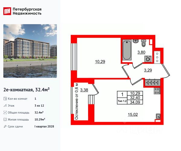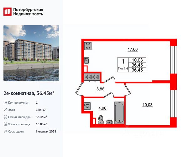 Продается просторная 1-комнатная квартира от застройщика в жилом комплексе "Setl Ривьера" в активно развивающимся Невском районе. До метро можно добраться на транспорте всего за 10 минут. Удобная, классическая, функциональная европланировка, большая кухня-гостиная 19.02 м², просторная прихожая 4.26 м². Общая площадь квартиры - 38.41 м², жилая 10.61 м², высота потолка 3 м. Квартира продается с отделкой "NORD LINE WHITE ВК NEW". Что особенного в ЖК "Setl Ривьера"? • Первая береговая линия Невы. 5 км до центра Петербурга • "Активити парк" - пространство для занятий спортом и отдыха. "Ривьера парк" с променадом и панорамной ротондой • Масштабные дворы 10 000 кв.м. с авторским ландшафтным дизайном • Двухуровневые единые входные группы • Видовые квартиры с террасами, каминами и саунами