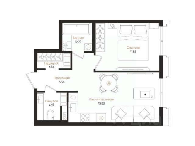 В санузле оборудованы теплые полы.