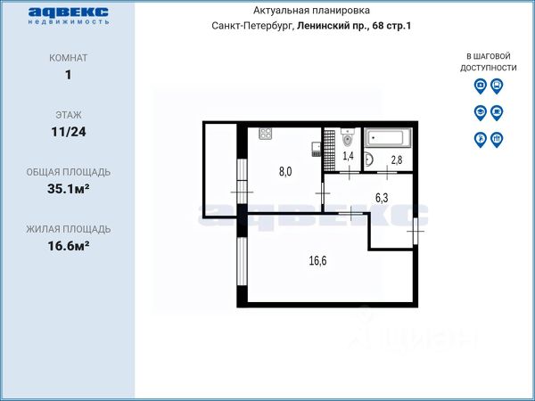 • ✓ В базе Циан 2 1-комнатных квартир с дизайнерским ремонтом на проспекте Кузнецова в Санкт-Петербурге