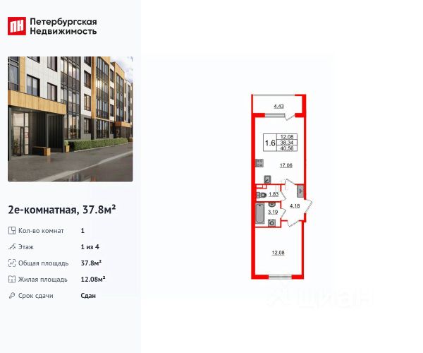В продаже уютная 2кк квартира в историческом месте г.Санкт Петербург, площадь: 45,4 кв.м. от собственника без комиссии!