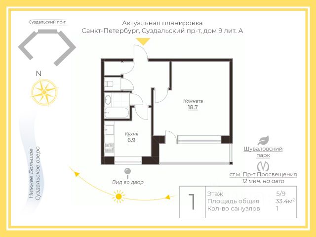 Все окна выходят на одну сторону. В квартире один балкон, один раздельный санузел.