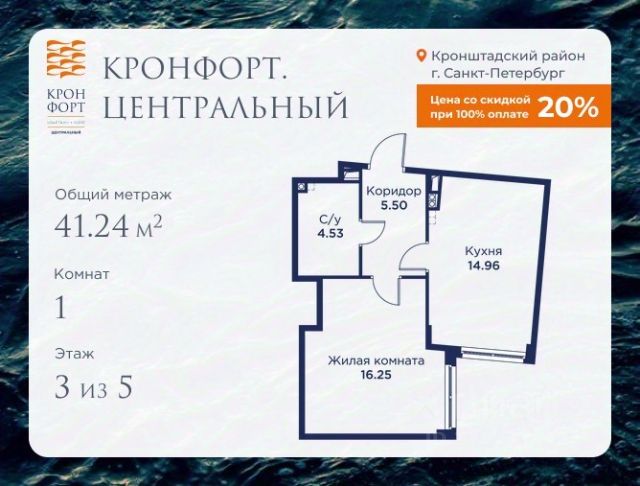 Стоимость квартиры указана со скидкой 20%. Скидка предоставляется при 100% оплате или несубсидированной ипотеке. Предлагается квартира площадью 43.47 кв.м в жилом комплексе "Кронфорт. Центральный" в Санкт-Петербурге (Кронштадт). Возможна покупка с использованием льготных и специальных ипотечных программ с государственной поддержкой. Высота потолков в квартирах — от 3 до 3,4 метров, окна увеличенного размера, есть варианты с эркерами, французскими балконами, лоджиями и террасами. Жилой квартал состоит из пяти четырехэтажных корпусов с закрытыми охраняемыми дворами, свободными от машин. Первые этажи формируют торговые променады в стиле пешеходных улиц исторической части Петербурга и Кронштадта. Внутренние пространства между корпусами — пешеходные зоны с уютными площадями. Архитектурный облик квартала разработан бюро "Проектная культура" и международной компанией Chapman Taylor. Инфраструктура комплекса включает: - Лицей с двумя бассейнами - Детский сад на 150 мест с бассейном и закрытой территорией - Веревочный парк - Игровые площадки для активного отдыха; - Кабинет врача общей практики. - Подземные паркинги с лифтами. - Мусоросборные камеры, индивидуальные кладовые. - Закрытые дворы с контролем доступа и видеонаблюдением. - Мультформатный стрит-ретейл с кафе и ресторанами. - Триатлон-центр и беговые/велодорожки. - Учебно-тренировочный комплекс для детей "Лагерь настоящих героев". Транспортная доступность обеспечивает удобный выезд на КАД (около 1-3 км), 2 минуты пешком до автобусной остановки "Лицей", 25 минут до Сестрорецка, 30 минут до "Лахта-центра", 50 минут до аэропорта "Пулково" и 60 минут до Московского вокзала. Для любителей моря доступен маршрут на "Метеоре" до центра Санкт-Петербурга. Отделка квартир предлагается как с готовой чистовой отделкой, так и со свободной планировкой без отделки для реализации индивидуальных дизайнерских решений. В третьем корпусе, продажи которого стартовали в марте 2025 года, доступны квартиры с просторными террасами, тремя балконами, кухнями-гостиными до 38 кв.м с окнами на две стороны, обеспечивающими панорамное освещение и виды. Если вам нужна помощь с оформлением ипотеки или дополнительная информация по комплексу и условиям покупки, обращайтесь в отдел продаж за консультацией. Продается 1-комнатная квартира с евроремонтом в Кронштадте.
