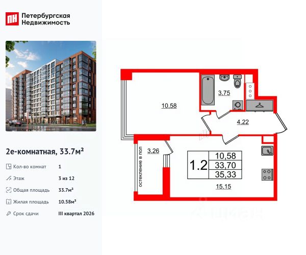 Продается уютная 1-комнатная квартира от застройщика в жилом комплексе "Титул в Московском" в престижном Московском районе. До метро можно добраться пешком всего за 25 минут. Удобная, классическая, функциональная европланировка, большая кухня-гостиная 15 м², вместительная прихожая 3.59 м². Общая площадь квартиры - 32.55 м², жилая 10.3 м², высота потолка 2.77 м. Квартира продается с отделкой "NORD LINE WHITE ВК NEW". Что особенного в ЖК "Титул в Московском"? • Престижный Московский район • Авторская архитектурная концепция • 2 центральные входные группы с ресепшн и лаундж-зонами • Кленовая аллея с арт-стеллой, цветочная аллея и сад трав • Уютные дворы-патио, площадки SetlKids и SetlSport • Инновационный Лицей Setl с оригинальной архитектурной концепцией и уникальной образовательной средой 1-комнатной квартиры с евроремонтом на улице Кубинская в Санкт-Петербурге.