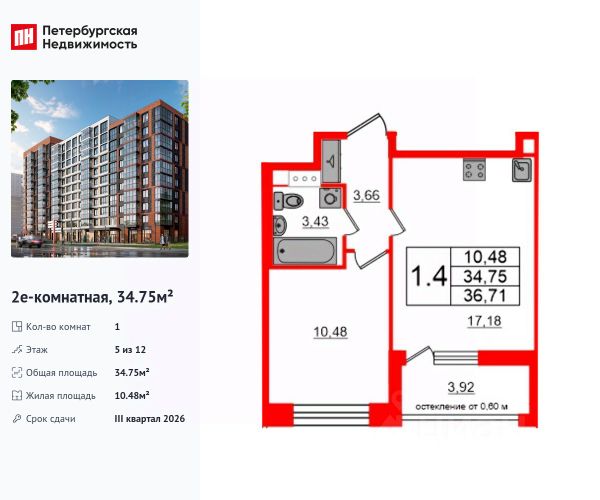 Продается 1 комн квартира в новом ЖК Cube 2024 года постройки в престижном, развитом , тихом Московском районе!