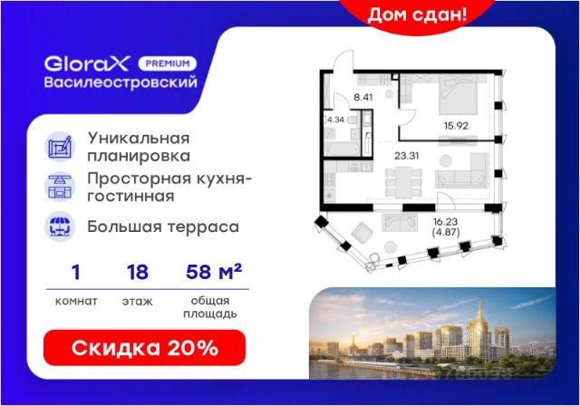 Успейте оформить бронирование на этих условиях! Период предложения ограничен! Стоимость квартиры указана со скидкой, ваша экономия составит 3,580,000 RUB. Информация по телефону, наши менеджеры вам все расскажут! Просторная 1-комн. квартира с предчистовой отделкой в ЖК "Северный ветер" на 4 этаже. Общая площадь: 43.63 кв.м., жилая: 10.5 кв.м., площадь просторной кухни-столовой: 18.9 кв.м. Все окна выходят на одну сторону. В квартире одна лоджия, один совмещенный санузел. Высота потолков 3.1 м. Дом монолитный, многоподъездный, переменной этажности, от 3 до 16 этажей. Квартира находится в 4-й секции высотой 16 этажей в корпусе 3-1. На этаже 9 квартир. В подъезде 2 грузовых лифта. Окончание строительства - 2 квартал 2028 года. Оформление сделки по договору долевого участия. В основу концепции проекта "Северный ветер" легла идея деления квартала на шесть кластеров — активный городской, тихий природный, спортивный, семейный, культурный и рекреационный. Внутри каждого кластера будут организованы разные по характеру площади со своим назначением. Все их свяжет кольцевой бульвар, соединенный с большим парком и сопровождаемый водными аллеями по периметру всего квартала. Внешний облик "Северного ветра" вдохновлен скандинавским функционализмом и финским модернизмом, которым присущи лаконичные формы, динамичные разноуровневые объёмы, ритм окон, балконов и террас, сочетание натуральных текстур, а также единство экстерьера и интерьера. Дворы мы организовали на стилобатах домов. За счёт этого они приподнялись над улицей, стали еще более приватными и безопасными. Для тех, кому двор на стилобате кажется слишком приземленным, мы создали особенные зеленые террасы с великолепным видом на залив. Они появятся на крыше дома, в котором расположен дом культуры. Мы разделили лобби на два типа — большие (одно на каждый дом) и компактные (на каждую секцию). Для создания интерьеров лобби и холлов мы используем материалы природных оттенков, текстуры дерева и камня, матовые поверхности. В большие открытые пространства запускаем много естественного света, а витражное остекление органично связывает помещения с ландшафтом. В квартале спроектировано более 65 типов планировочных решений. Это значит, что любой жизненный сценарий может быть здесь реализован. #Zmgzaz Продам 1-комнатную квартиру с евроремонтом рядом с метро Приморская.