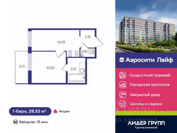 Продается просторная 1-комнатная квартира от застройщика в жилом комплексе "Univer City" в на юге Санкт-Петербурга. До метро можно добраться на транспорте всего за 30 минут. Удобная, классическая, функциональная европланировка, большая кухня-гостиная 17.82 м², вместительная прихожая 3.96 м². Общая площадь квартиры - 36.72 м², жилая 10.47 м², высота потолка 2.77 м. Квартира продается с отделкой "NORD LINE SILVER". Что особенного в ЖК "Univer City"? • Малоэтажное строительство • Скандинавские фасады с отделкой керамогранитом, акцентные входные группы • Закрытые внутренние дворы без машин • Пешеходный променад с тематическими зонами, еловый сквер и яблоневый сад • Univer Park, включая SetlSport и SetlKids, площадку для выгула собак и зоны отдыха • Инновационный Лицей Setl с оригинальной архитектурной концепцией и уникальной образовательной средой