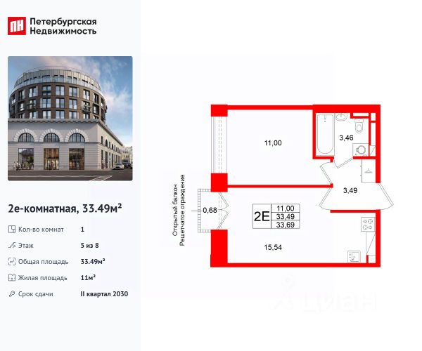 Предлагаем к продаже однокомнатную квартиру в ЖК "Палацио" площадью 38,3 кв. м.