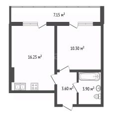 Санузел совмещённый, оборудован ванной и качественной сантехникой, что обеспечивает комфорт и функциональность пространств