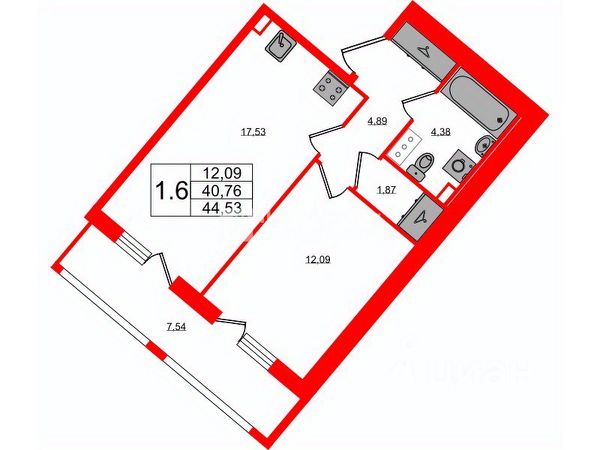 Самая удачная планировка из доступных в жилом комплексе, максимальная "полезная" площадь для проживания. Фактическая площадь квартиры составляет 36,2 м2.