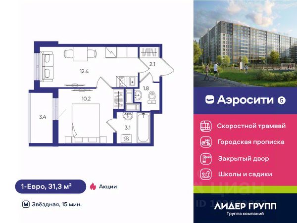 Цена действует при 100% оплате и на определенные ипотечные программы. Подробности — в отделе продаж по телефону. Продается 1-комнатная квартира в ЖК "Пулково Лейк" на 4 этаже. Общая площадь составляет 49.80 кв. м. Квартира с чистовой отделкой. Жилой комплекс "Пулково Лейк" располагается по адресу Санкт-Петербург, Московский. Пулково Лейк - проект малоэтажной застройки на берегу озера на границе Московского и Пушкинского районов. Дома высотой всего 4 этажа, квартиры от уютных студий до трехкомнатных квартир для большой семьи. Широчайший выбор планировок, включая квартиры с мастер-спальнями, патио, каминами, саунами, двухуровневые квартиры. Школа, детские сады, парк на берегу озера и выезды на Пулковское и Петербургское шоссе. Расположение: • 5 мин на авто до Аэропорта Пулково; • 10 мин на авто до станций метро "Московская; • 10-15 мин на авто до городов Пушкина, Павловска и Гатчины; • 20 мин на авто до центра Санкт-Петербурга. Квартиры в проекте сдаются с предчистовой и чистовой отделкой Соmfоrt Stоnе и Соmfоrt Wооd по современным стандартам - Вы можете сами выбрать отделку, подходящую именно Вам. Дома оборудованы самыми современными инженерными системами и "Умным домом". В рамках проекта будет построена современная школа на 925 мест и 2 детских сада на 160 и 240 мест, выезды на Пулковское и Петербургское шоссе, а также храм рядом со сквером "Пулковский рубеж". Общественное пространство вдоль берега озера превратится во всесезонный парк, в котором найдется место для любых активностей от пробежек, катания на САПах и велосипедах до отдыха в шезлонгах и любования закатом солнца. Зимой будет работать каток, проложен лыжный маршрут, предусмотрено место для новогодней елки и горок для детей. Для Ваших питомцев - площадка для выгула собак. Преимущества: • Высота потолков от 2,6 до 4,5 м; • Уникальные планировки; • Парк на берегу озера; • Система "Умный дом"; • Дворы без машин; • Колясочная в парадной; • Видеонаблюдение в холлах, на первом этаже, в лифтах и в паркингах. Успейте приобрести квартиру на выгодных условиях! Чтобы узнать подробности, обращайтесь за консультацией по телефону. 1-комнатной квартиры с евроремонтом в районе Пушкинский в Санкт-Петербурге.