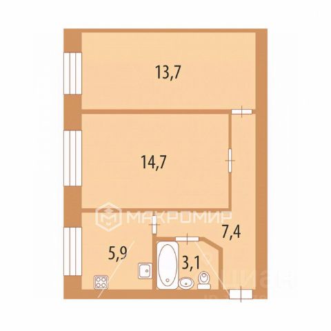 - изолированные комнаты правильной формы 14,7 кв.м. и 13,7 кв.м.