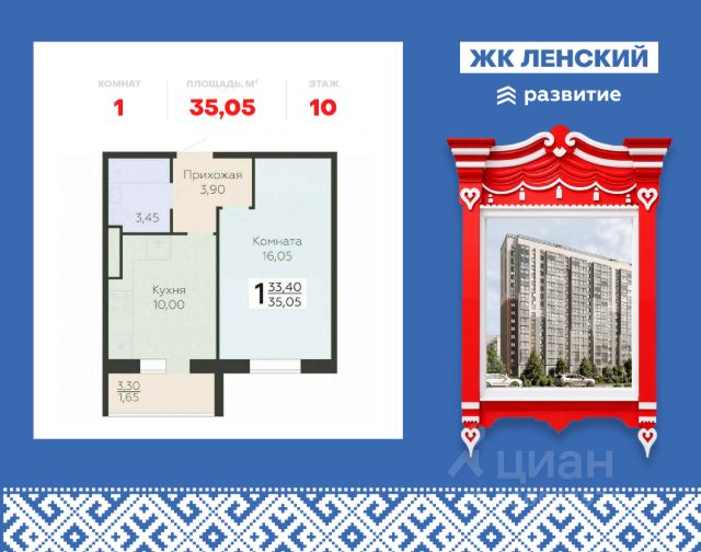 1-комнатная квартира площадью 32.90 в ЖК "А101 Всеволожск" c лоджией на 2 этаже. Квартира с отделкой. Вид из окна во двор. В квартире 1 санузел. Высота потолков 2.95 м. ОТДЕЛКА Для квартир с чистовой отделкой предлагается три варианта дизайна: Классика, Карелия светлая и Карелия темная. Варианты всех дизайнерских решений представлены на фотографиях. Подробности можно уточнить у менеджера. На все отделочные работы от застройщика предоставляется гарантия. ОСОБЕННОСТИ ПЛАНИРОВКИ Глубокая лоджия от 1,4м позволяет организовать отдельный кабинет, мастерскую или зимний сад с лаундж-зоной. ПАРАДНАЯ В каждой парадной предусмотрены места для хранения велосипедов и колясок, гостевой санузел, лапамойка (место для мытья домашних животных или колес велосипедов) и удобная зона ожидания для гостей. ДВОРЫ И ОКРУЖЕНИЕ Просторные дворы свободны от машин и закрыты от посторонних. Большую часть комплекса займут благоустроенные зелёные зоны, теневые сады и городские общественные пространства с развитой тротуарной сетью и велодорожками. Каждый дом оборудован системами видеонаблюдения и контроля доступа. Не хватает средств на покупку кладового помещения? Оформите ипотеку на квартиру и добавьте к ней часть стоимости кладовой. ЗАСТРОЙЩИК ГК "А101" - крупный инвестиционно-строительный холдинг, занимает 6-е место по объему строительства в России (по данным "Единого ресурса застройщиков" на 2023 год). НКР присвоило ГК "А101" кредитный рейтинг A+.ru, подтверждая его надежность и финансовую устойчивость для завершения строительства ЖК.
