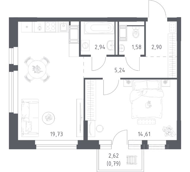 В продаже 1-комнатная квартира в корпусе 39 ЖК 'Новое Колпино'. Квартира располагается на 2 этаже, общая площадь 30.1 м2.