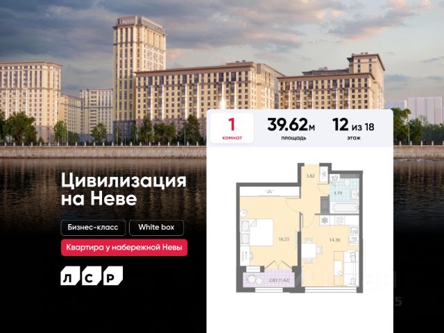 Цена действует при 100% оплате и на определенные ипотечные программы. Подробности — в отделе продаж по телефону. Продаётся 1-комнатная квартира в ЖК "Цивилизация на Неве" на 4 этаже. Общая площадь составляет 37.99 кв. м. Квартира с white box отделкой. Жилой комплекс "Цивилизация на Неве" располагается по адресу Санкт-Петербург, Невский. "Цивилизация на Неве" - видовые дома бизнес-класса, расположенные вдоль набережной Невы, всего в 7 км от исторического центра. Жилой комплекс идеально выражает особый дух, свойственный знаменитым просторным кварталам постройки сталинской эпохи в Москве и на Московском проспекте в Петербурге. Расположение: • 15 мин на авто до Невского проспекта; • 15 мин на авто до Московского вокзала; • 5 мин на авто до станции метро "Улица Дыбенко"; • 14 мин (7 км) до КАД. Уникальный дизайн входных зон, закрытая территория, видеонаблюдение и охрана, подземный паркинг с лифтом и другие особенности проекта отвечают заявленному классу. В каждом дворе предусмотрено озеленение по индивидуальному ландшафтному проекту с благородными растениями и кустарниками. Преимущества: • Закрытая территория с видеонаблюдением; • Подземный паркинг с лифтом; • Детская площадка на приватной безопасной территории; • Несколько детских садов и школ; • Инфраструктура шаговой доступности на первых этажах корпусов. Успейте приобрести квартиру на выгодных условиях! Чтобы узнать подробности, обращайтесь за консультацией по телефону. Купить 1-комнатную квартиру в муниципальном округе № 54 в Санкт-Петербурге.