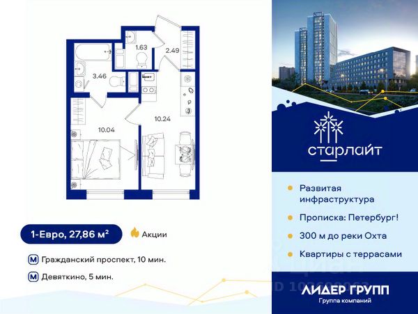 Продается 1-комнатная квартира в ЖК "Цветной город" на 4 этаже. Общая площадь составляет 28.60 кв. м. Квартира с чистовой отделкой Срок сдачи дома: 3 квартал 2026. Жилой комплекс "Цветной город" располагается по адресу Санкт-Петербург, Красногвардейский. "Цветной город" - современный масштабный эко-проект: жилые кварталы со своей сетью улиц, пешеходными бульварами и велодорожками, площадками для спорта и отдыха. Кварталы располагаются вдоль береговой линии реки Охты. "Цветной город" - это жизнь вблизи природы, но с городской пропиской. К 2026 году на берегах реки Охты будет создан Пейзажный парк с летними экотропами и зимними горками для тюбингов, скейт-парком и летним кинотеатром. В ЖК "Цветной город" запланировано и уже частично реализовано строительство 10 школ, 16 детских садов, 4 поликлиники, больница, ТРК, спортивно-оздоровительные сервисы С центром Петербурга жителей "Цветного города" свяжет Пискарёвский проспект, удобный выезд на КАД позволяет без труда добираться до других районов. Расположение: • 10 минут на авто до КАД; • 15 минут на авто до станций "Гражданский проспект" и "Академическая"; • 20 минут до ж/д станции "Ручьи".; Квартира сдается с готовой отделкой из современных экологичных материалов: на стенах плотные белые обои под покраску, на полу износостойкий матовый ламинат, в санузлах керамическая плитка на стенах и керамогранит на полу. Трубы отопления скрыты в стяжке пола и не мешают мебели. В квартире предусмотрено большое количество двойных розеток и выключателей. В ЖК "Цветной город" предусмотрена система "Умный дом": смартфон с приложением является ключом от всех дверей в ЖК, гостевой доступ оформляется в приложении, видеозвонки от домофона поступают в приложение, показания счетчиков автоматически передаются в учетные базы ЖКХ. Преимущества: • Рядом лесопарк и река Охта • Живописные виды из окон • Безбарьерная среда • Развитая социальная инфраструктура • Система "Умный дом" Успейте приобрести квартиру на выгодных условиях! Чтобы узнать подробности, обращайтесь за консультацией по телефону. Купить 1-комнатную квартиру на дороге Муринская в Санкт-Петербурге.