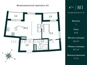 3. Остановка транспорта рядом с домом, до станции метро "Комендантский проспект" 10 минут на транспорте; также можно доехать до станций метро "Пионерская", "Старая деревня";