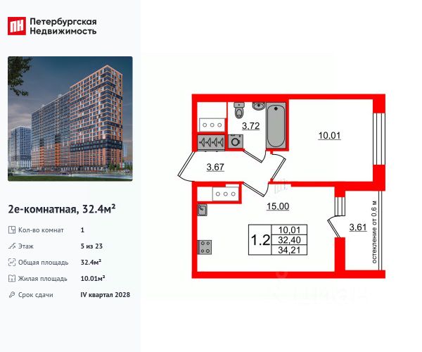 Продается уютная 1-комнатная квартира от застройщика в жилом комплексе "Город звезд" в новом городе на правом берегу Невы. До метро можно добраться на транспорте всего за 13 минут. Удобная, классическая планировка, кухня 11.11 м², просторная прихожая 5.48 м². Общая площадь квартиры - 30.5 м², жилая 10.46 м², высота потолка 2.77 м. Квартира продается с отделкой "NORD LINE SILVER". Что особенного в ЖК "Город звезд"? • Инновационный Лицей Setl с оригинальной архитектурной концепцией и уникальной образовательной средой • Невский лесопарк под окнами - всегда свежий воздух и полноценный отдых на природе • Четыре тематические площади отдыха с разнообразным благоустройством • Аллея Звёзд - променад протяженностью 5 км с ландшафтным озеленением, зонами отдыха и велодорожкой • Выход на набережную реки Утки, где можно порыбачить или взять напрокат лодку • Единая входная группа с ресепшен и подземный паркинг Продается 1-комнатная квартира рядом с метро Пролетарская.